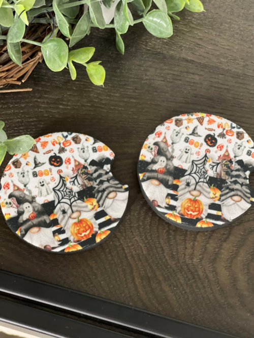 Our Halloween Gnomes car coaster is the perfect addition to our Halloween Gnomes tumbler. The design is part of the coaster and not vinyl or any sort of sticker. They are high quality and made to last! They are 2.5" in size and made of neoprene.